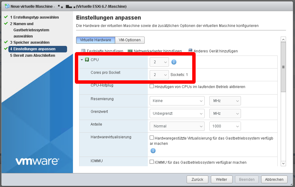 • Anzahl CPU (Sockets / Kerne) und Taktung